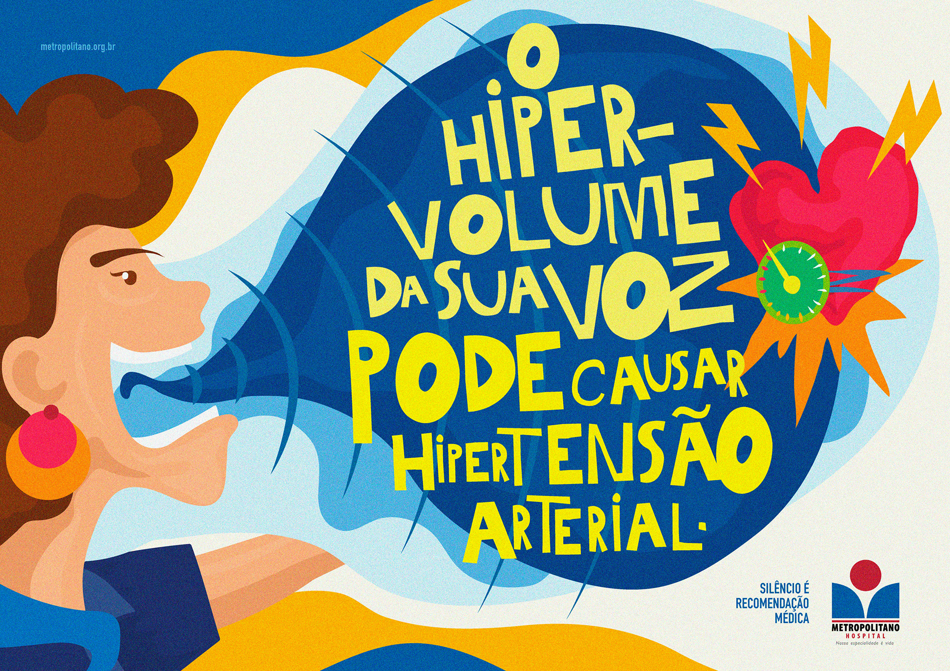 Barulho adoece. Em hospital, atrapalha descanso, gera tensão e prolonga desconfortos. O Hospital Metropolitano precisava reduzir ruídos em áreas críticas com comunicação simples e inegociável.